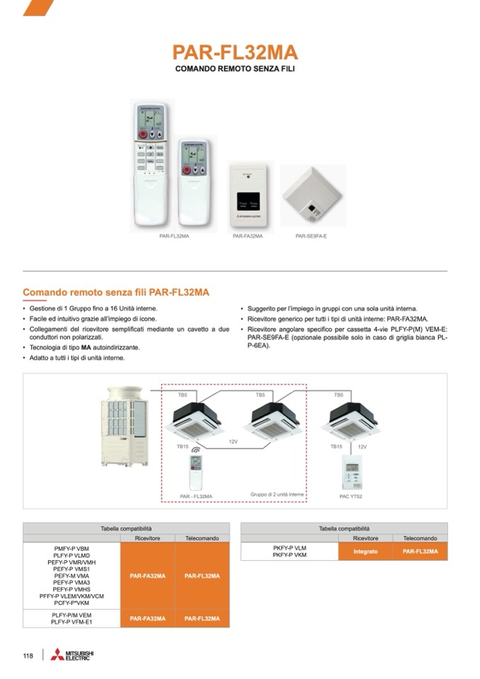 Ricevitore generico per tutti i tipi di unità interne: PAR-FA32MA