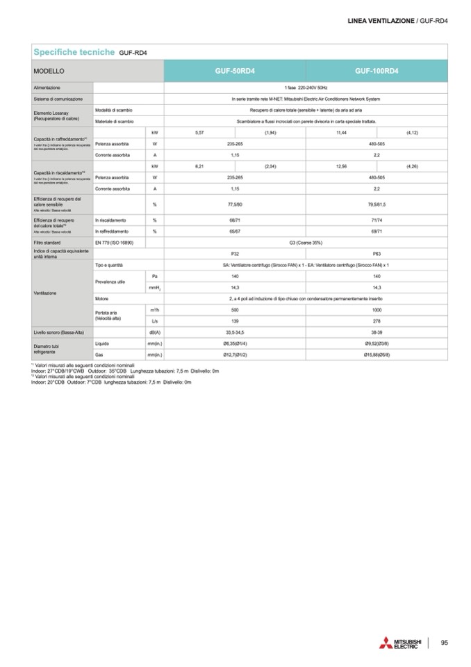 Indoor: 27°CDB/19°CWB Outdoor: 35°CDB Lunghezza tubazioni: 7,5 m Dislivello: 0