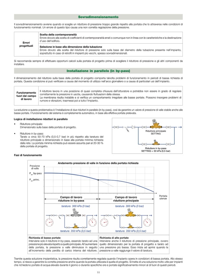 Il sovradimensionamento avviene quando si sceglie un riduttore di pressione troppo grande rispetto alla portata che lo attraversa nelle condizioni di
