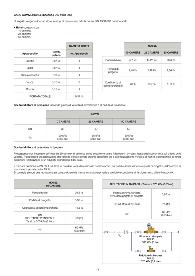 Proseguendo con l’esempio dell’hotel da 50 camere, si definisce come scegliere e tarare il riduttore in by-pass, basandosi nuovamente sul criterio delle
