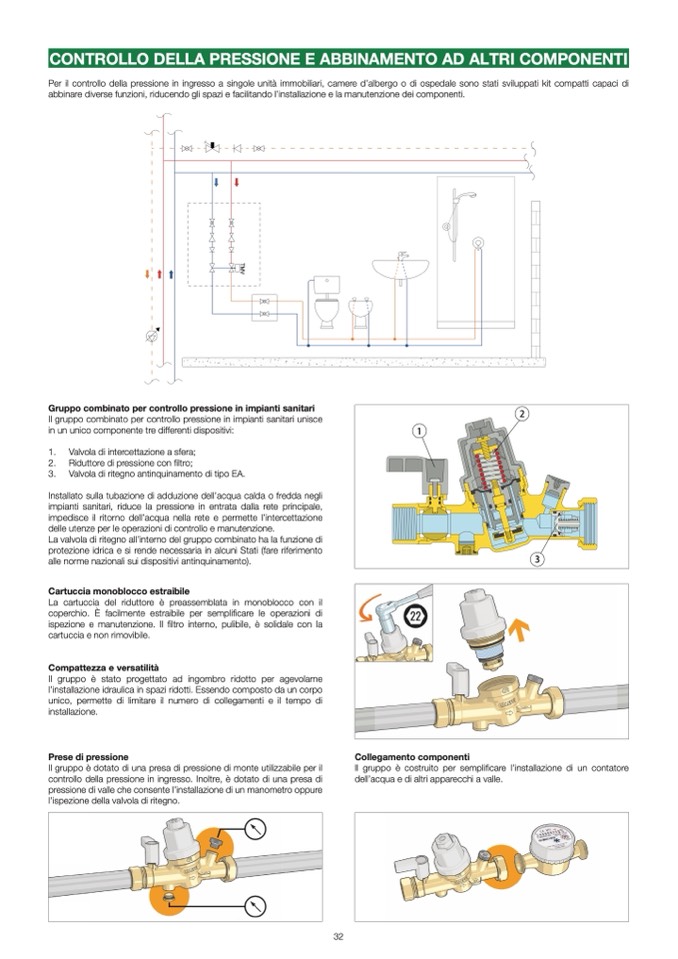 Per il controllo della pressione in ingresso a singole unità immobiliari, camere d’albergo o di ospedale sono stati sviluppati kit compatti capaci di