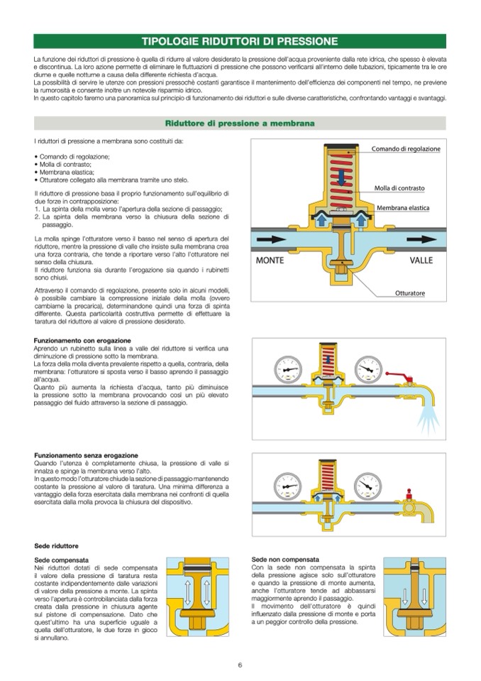 è quella di ridurre al valore desiderato la pressione dell’acqua proveniente dalla rete idrica, che spesso