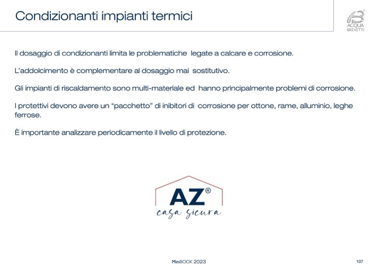 Il dosaggio di condizionanti limita le problematiche legate a calcare e corrosione.