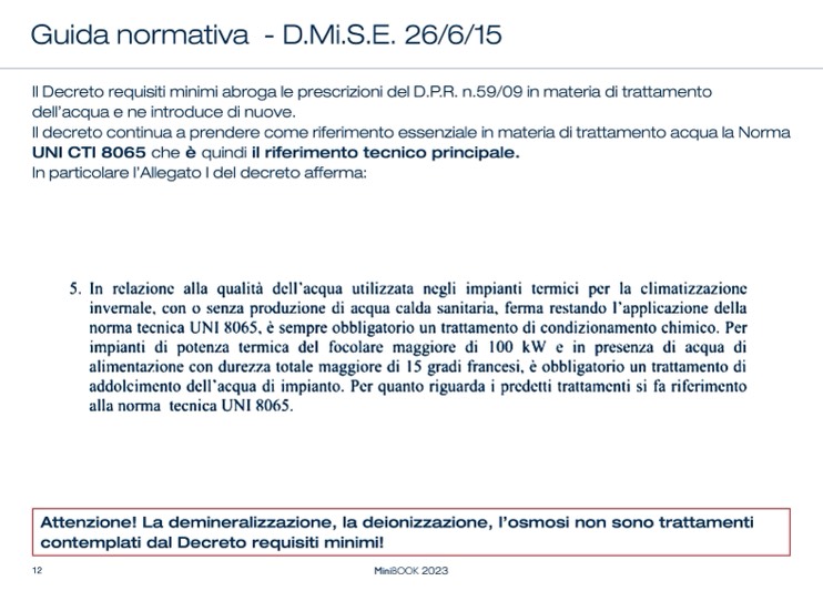 Il decreto continua a prendere come riferimento essenziale in materia di trattamento acqua la Norma