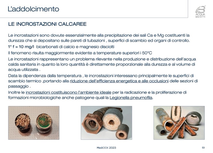 durezza che si depositano sulle pareti di tubazioni , superfici di scambio ed organi di controllo.