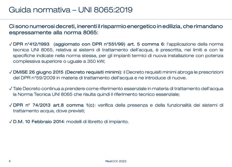 tecnica UNI 8065, relativa ai sistemi di trattamento dell’acqua, è prescritta, nei limiti e con le