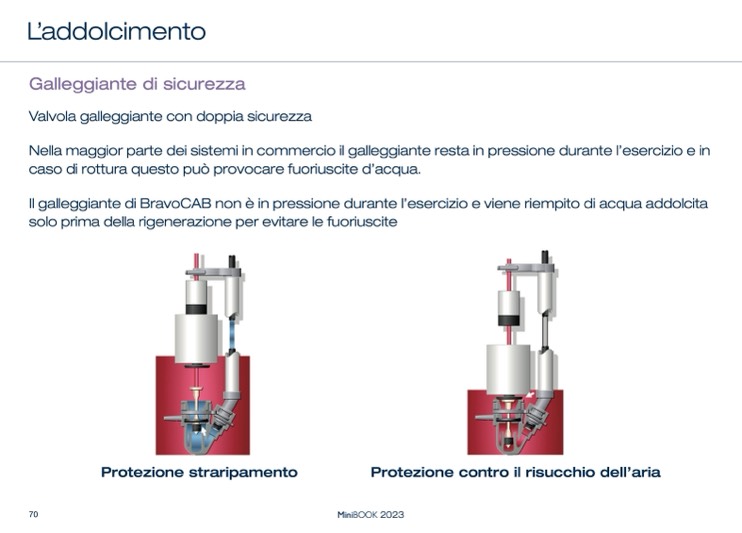 Il galleggiante di BravoCAB non è in pressione durante l’esercizio e viene riempito di acqua addolcita