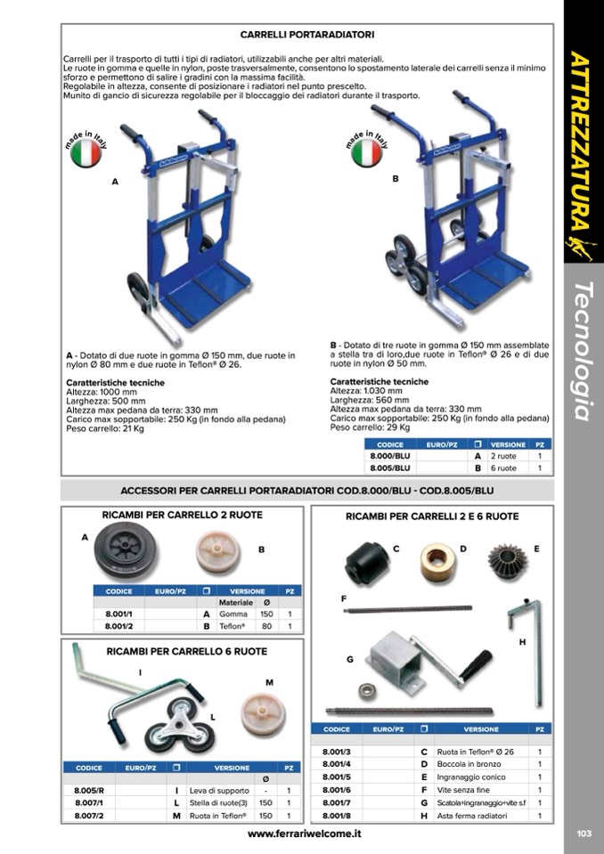 ACCESSORI PER CARRELLI PORTARADIATORI COD.8.000/BLU - COD.8.005/BLU
