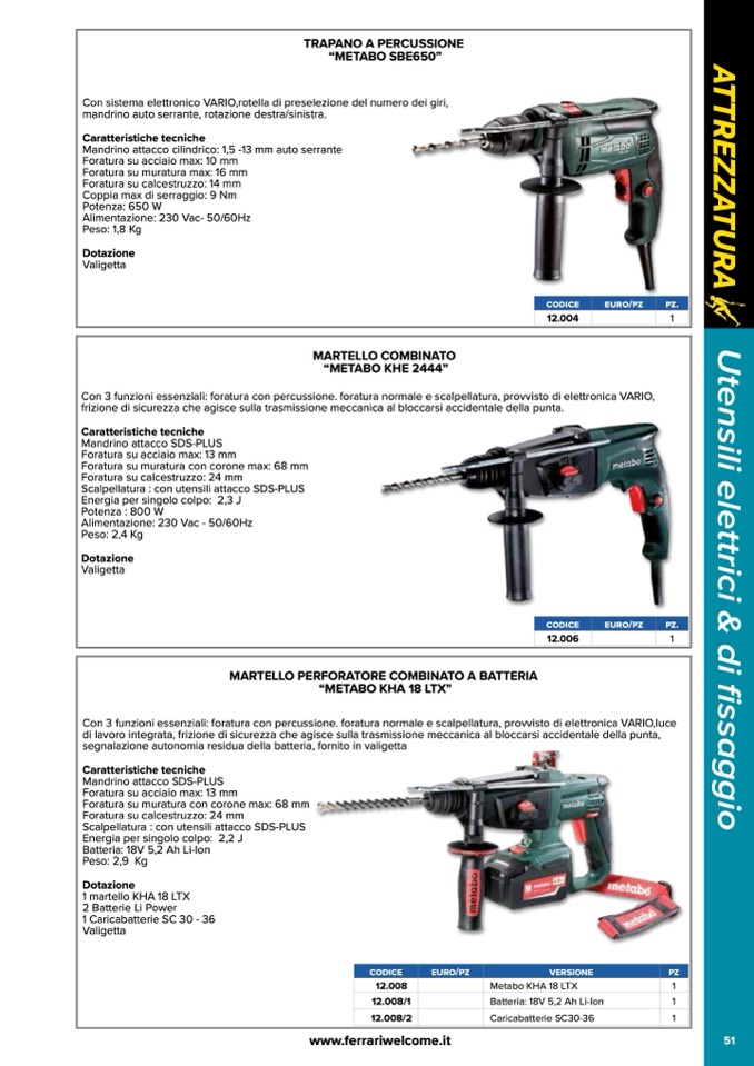 Con 3 funzioni essenziali: foratura con percussione. foratura normale e scalpellatura, provvisto di elettronica VARIO,luce