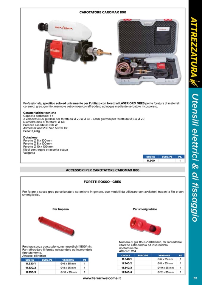 ACCESSORI PER CAROTATORE CAROMAX 800
