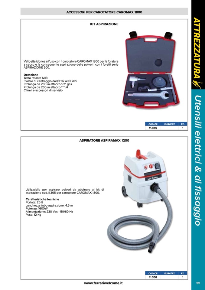 ACCESSORI PER CAROTATORE CAROMAX 1800