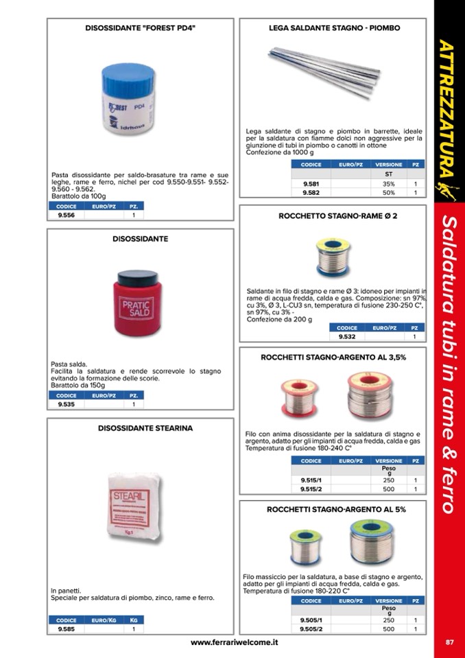 rame di acqua fredda, calda e gas. Composizione: sn 97%,