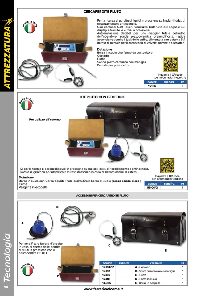 Borsa in cuoio con Cerca perdite Pluto cod.15.106in borsa di cuoio (senza sonda piezo )