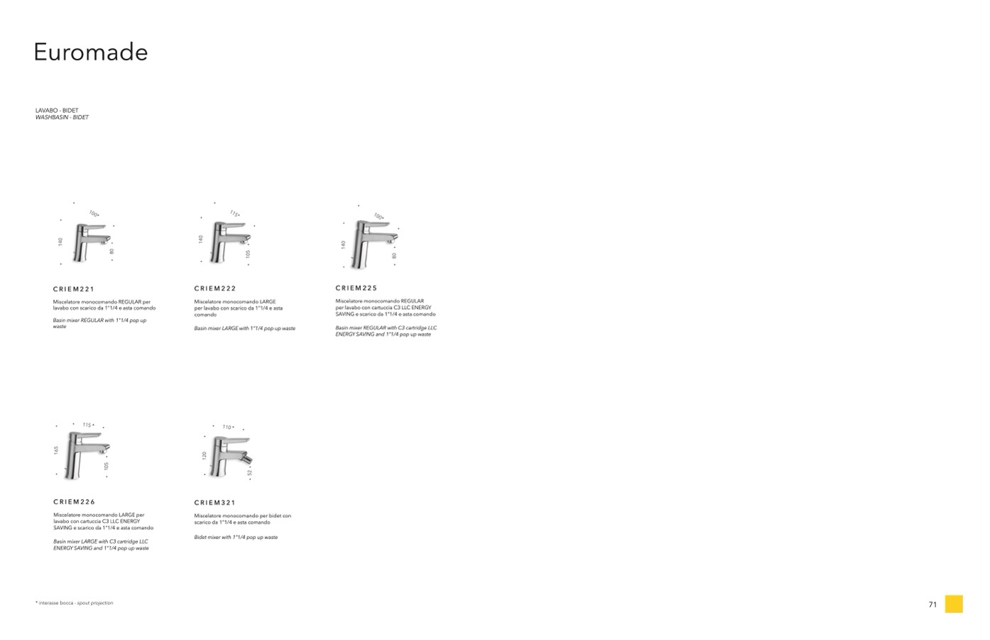 * interasse bocca - spout projection