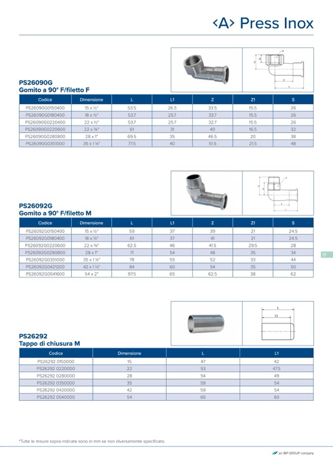 *Tutte le misure sopra indicate sono in mm se non diversamente specificato.