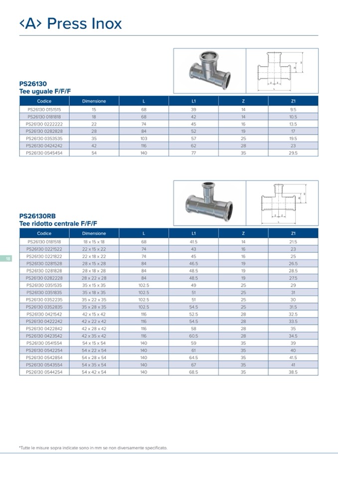 *Tutte le misure sopra indicate sono in mm se non diversamente specificato.