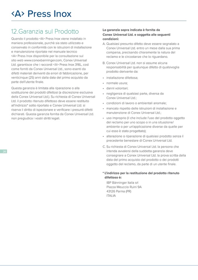 Quando il prodotto <A> Press Inox viene installato in
