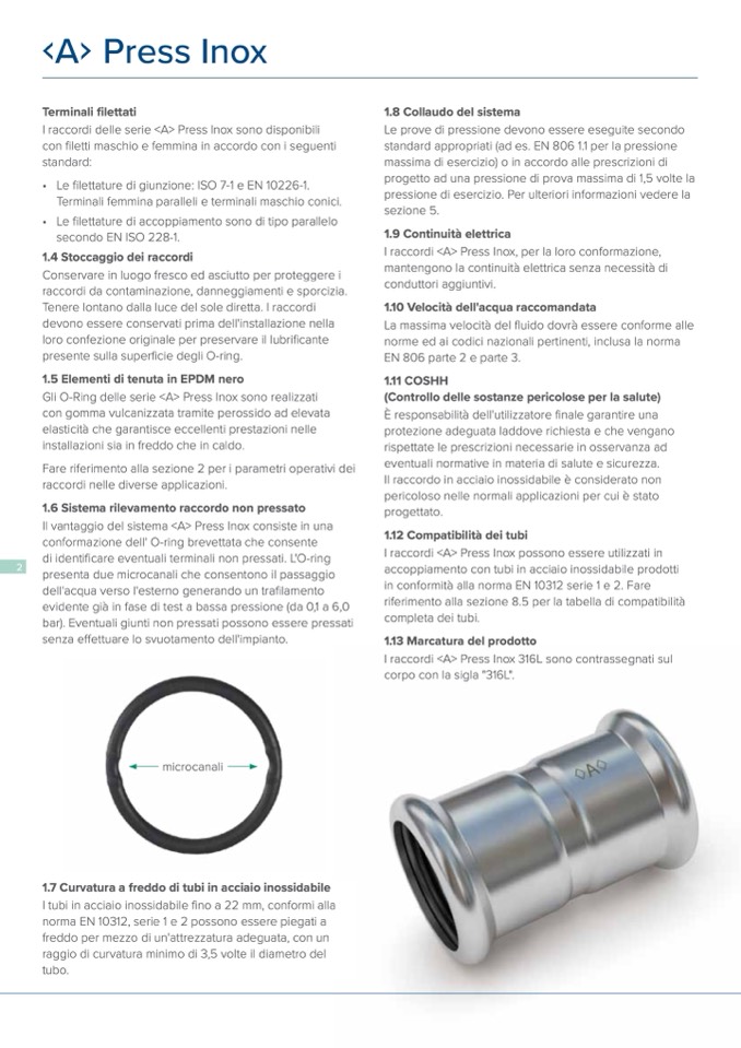 Il vantaggio del sistema <A> Press Inox consiste in una