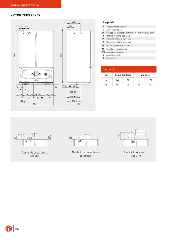 Scarico condensa (diametro interno minimo Ø 13 mm)