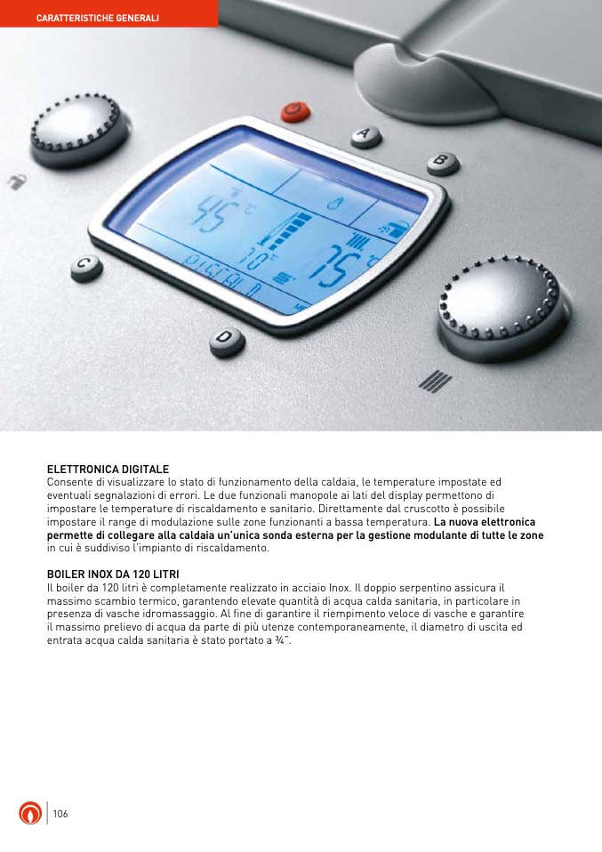 Il boiler da 120 litri è completamente realizzato in acciaio Inox. Il doppio serpentino assicura il