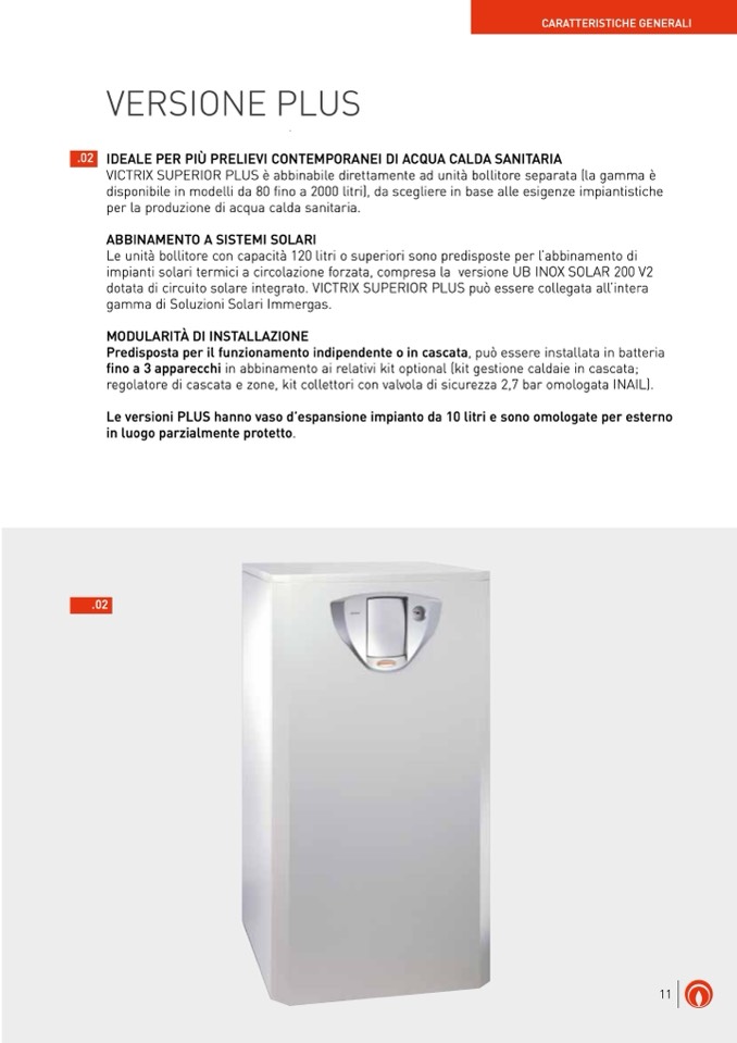 Le versioni PLUS hanno vaso d’espansione impianto da 10 litri e sono omologate per esterno