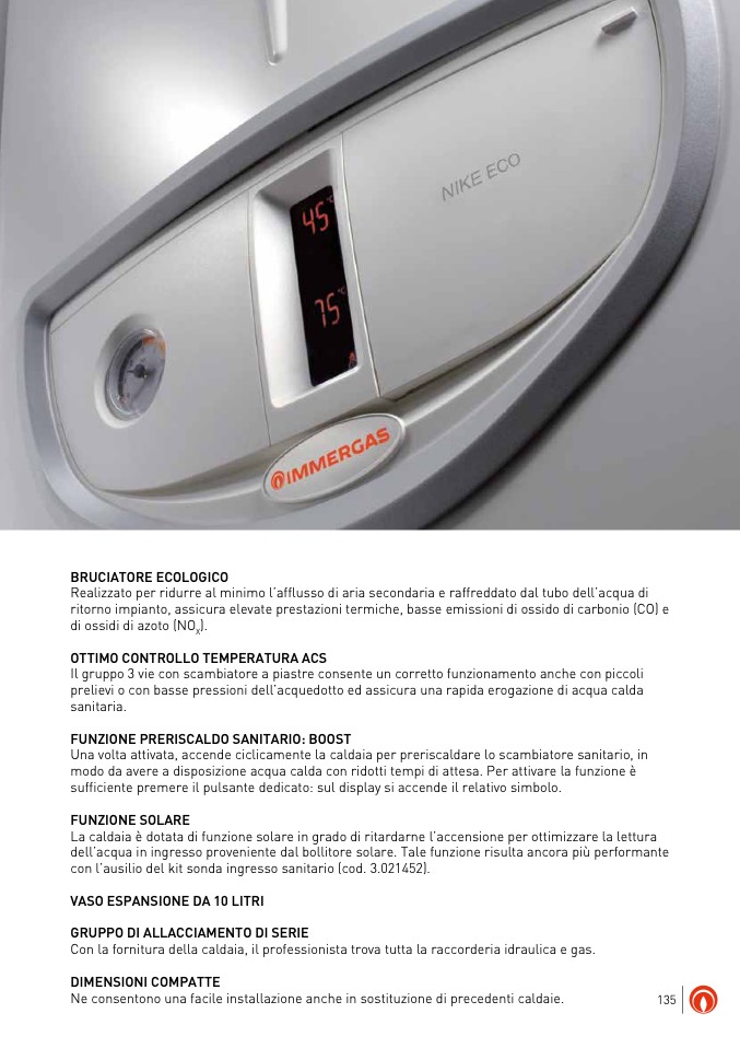 ritorno impianto, assicura elevate prestazioni termiche, basse emissioni di ossido di carbonio (CO) e