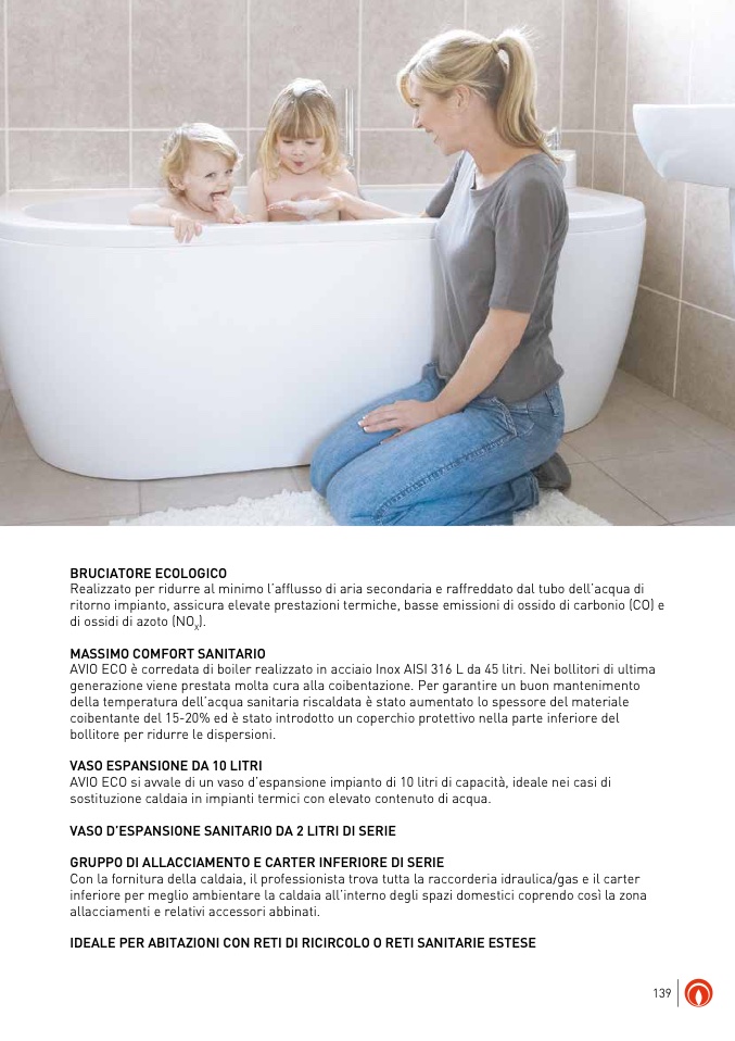 AVIO ECO è corredata di boiler realizzato in acciaio Inox AISI 316 L da 45 litri. Nei bollitori di ultima