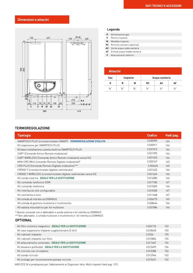 AVIO ECO 24 è predisposta per l’abbinamento ai Disgiuntori Idrici Multi-impianti (vedi pag. 151).