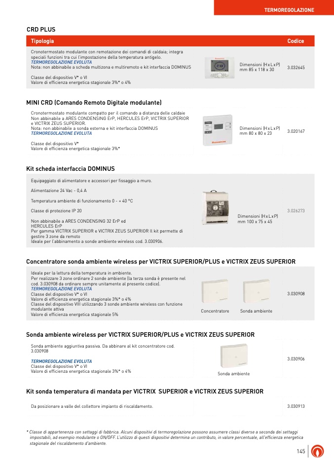 * Classe di appartenenza con settaggi di fabbrica. Alcuni dispositivi di termoregolazione possono assumere classi diverse a seconda dei settaggi