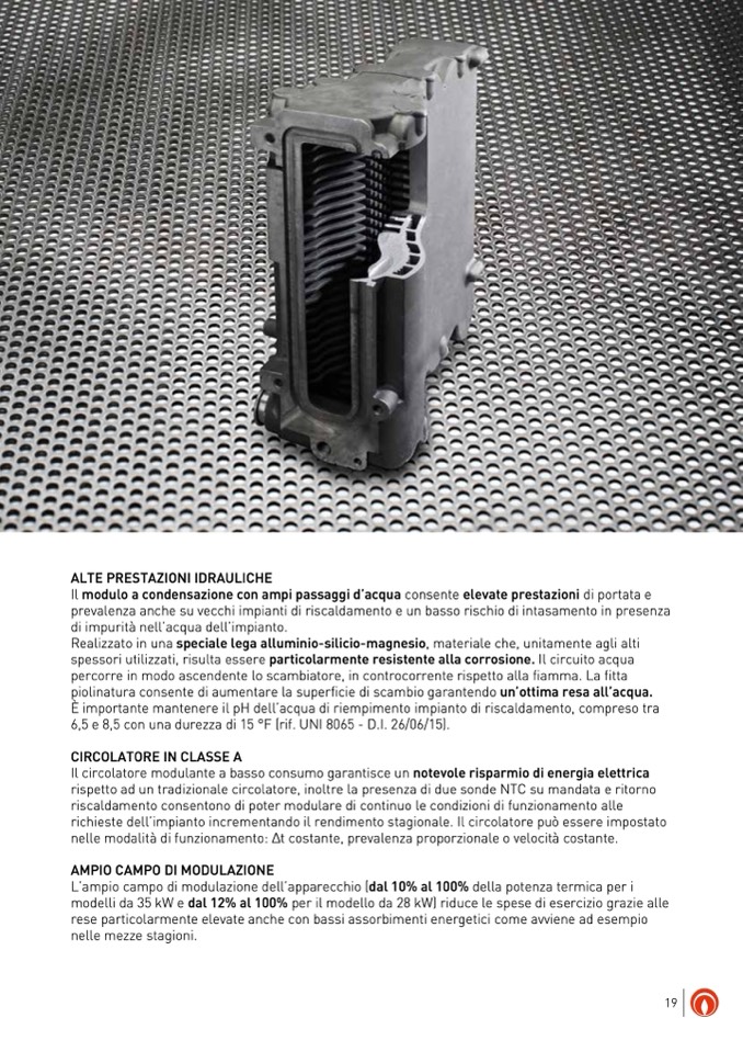 Il modulo a condensazione con ampi passaggi d’acqua consente elevate prestazioni di portata e