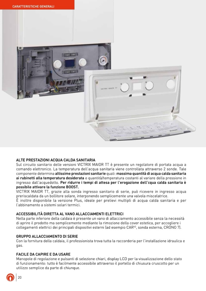 VICTRIX MAIOR TT, grazie alla sonda ingresso sanitario di serie, può ricevere in ingresso acqua