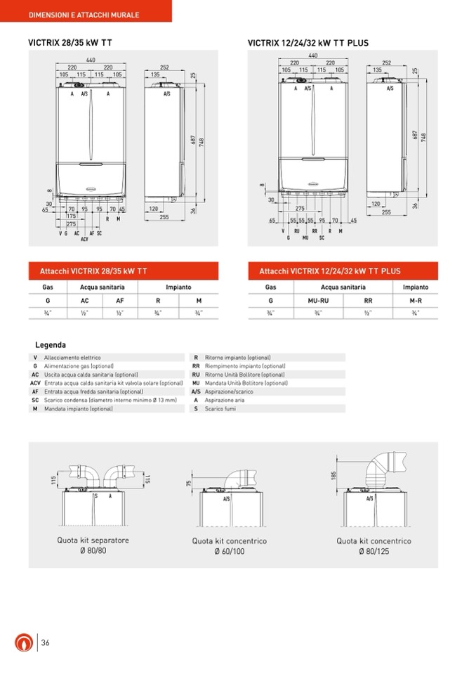 Scarico condensa (diametro interno minimo Ø 13 mm)