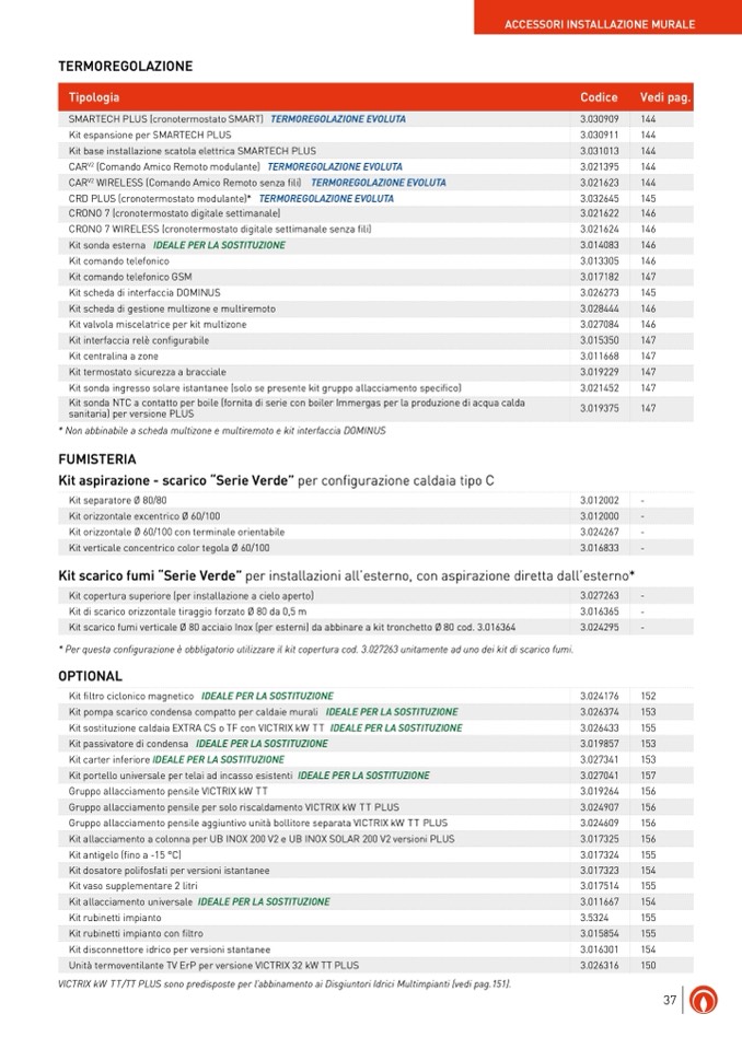 Kit sostituzione caldaia EXTRA CS o TF con VICTRIX kW T T IDEALE PER LA SOSTITUZIONE