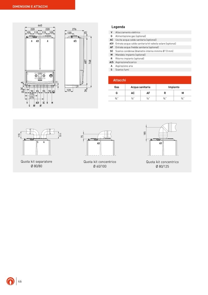 Scarico condensa (diametro interno minimo Ø 13 mm)