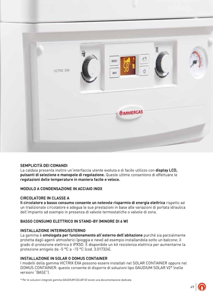 I modelli della gamma VICTRIX EXA possono essere installati nel SOLAR CONTAINER oppure nel
