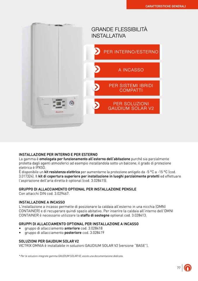 VICTRIX OMNIA è installabile in soluzioni GAUDIUM SOLAR V2 (versione “BASE”).
