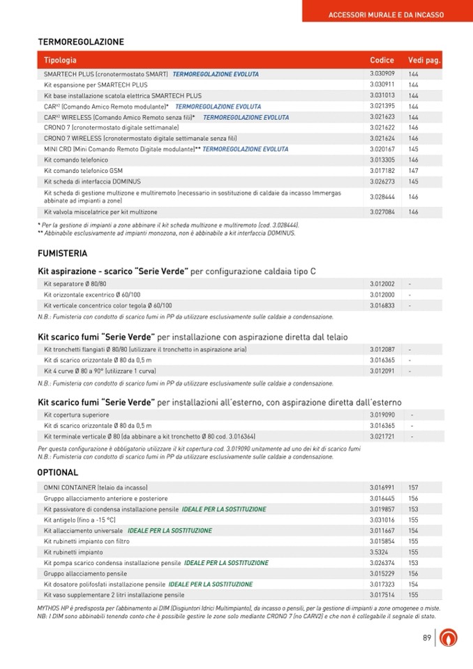 N.B.: Fumisteria con condotto di scarico fumi in PP da utilizzare esclusivamente sulle caldaie a condensazione.