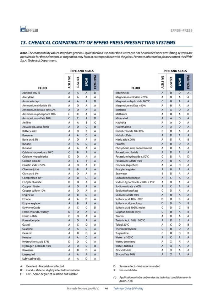 13. CHEMICAL COMPATIBILITY OF EFFEBI-PRESS PRESSFITTING SYSTEMS