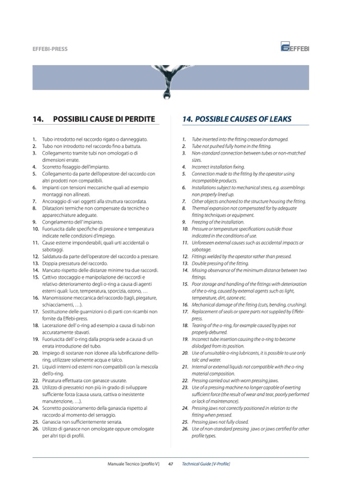 18. Lacerazione dell’ o-ring ad esempio a causa di tubi non