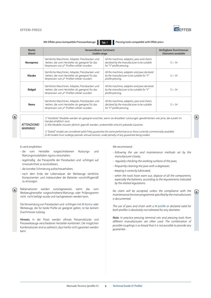 Presswerkzeuge verschiedener Hersteller kombiniert. Die möglichen
