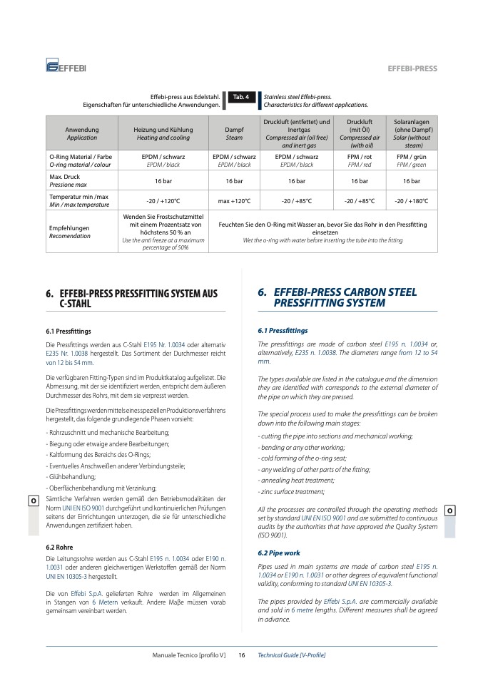 The pressfittings are made of carbon steel E195 n. 1.0034 or,