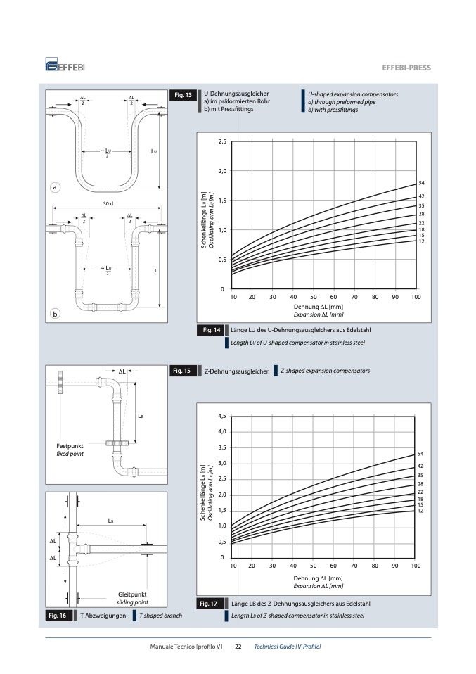 Länge LU des U-Dehnungsausgleichers aus Edelstahl