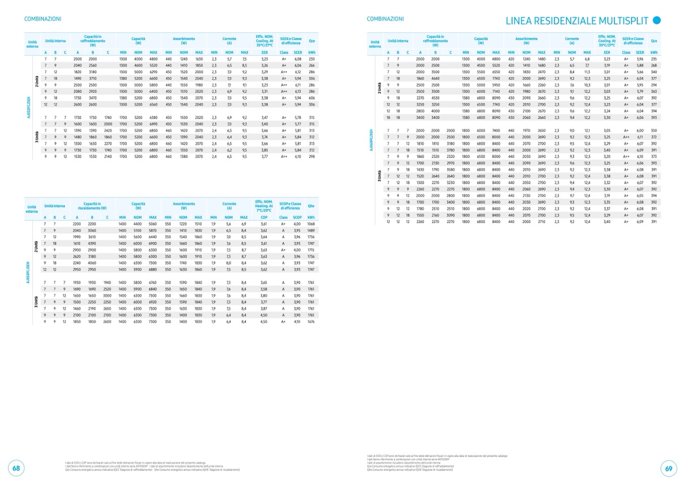 I dati di EER e COP sono dichiarati solo al fine delle detrazioni fiscali in vigore alla data di realizzazione del presente catalogo