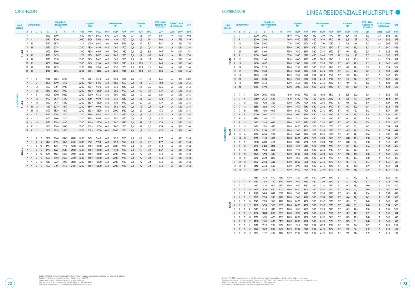 I dati di EER e COP sono dichiarati solo al fine delle detrazioni fiscali in vigore alla data di realizzazione del presente catalogo