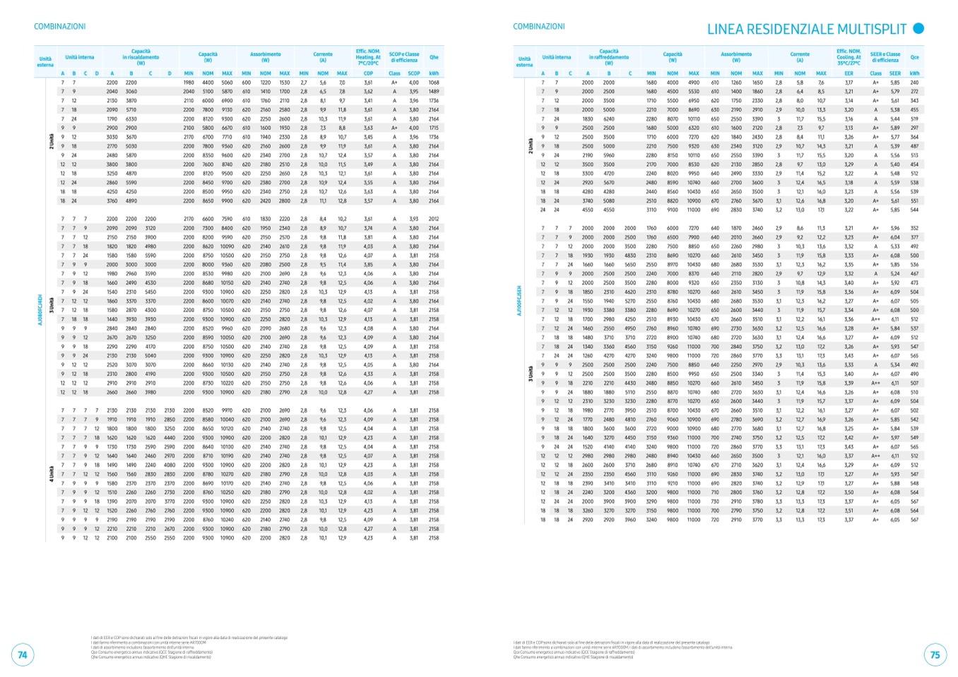 I dati di EER e COP sono dichiarati solo al fine delle detrazioni fiscali in vigore alla data di realizzazione del presente catalogo