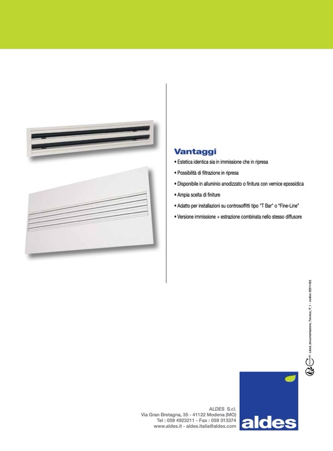 • Versione immissione + estrazione combinata nello stesso diffusore