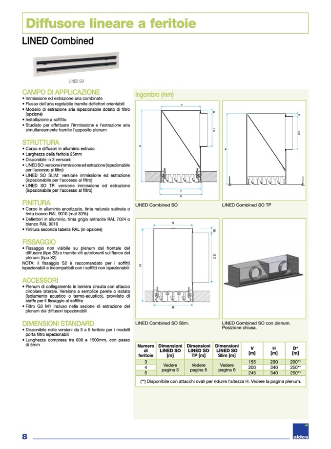 (**) Disponibile con attacchi ovali per ridurre l'altezza H. Vedere la pagina plenum.