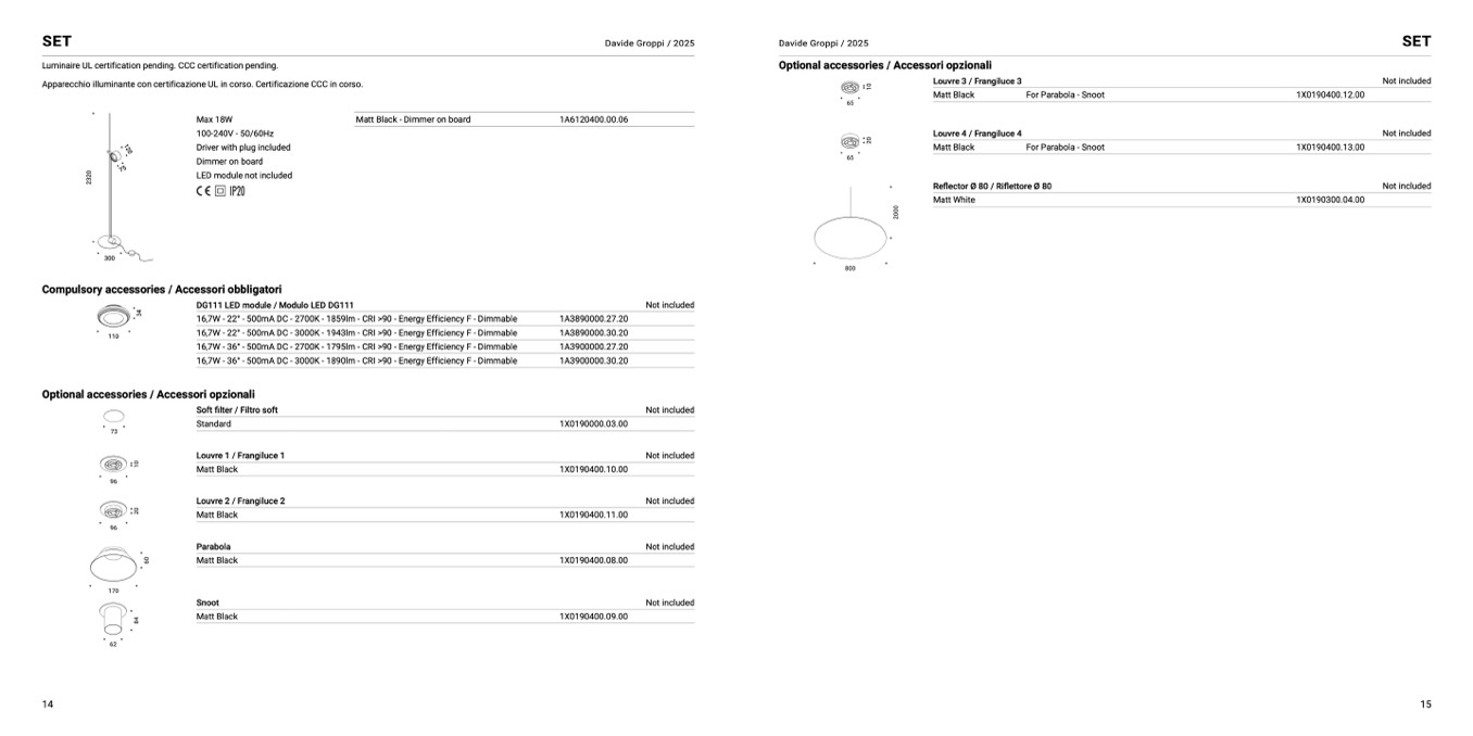 Apparecchio illuminante con certificazione UL in corso. Certificazione CCC in corso.