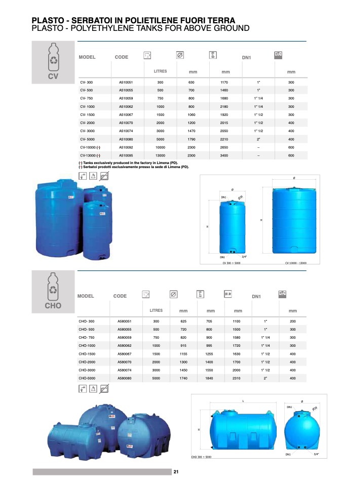 (•) Serbatoi prodotti esclusivamente presso la sede di Limena (PD).