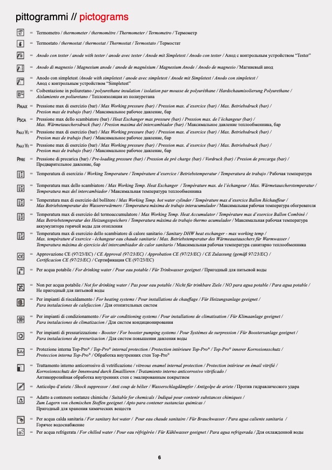 = Temperatura max di esercizio del bollitore / Max Working Temp. hot water cylinder / Température max d’exercice Ballon Réchauffeur /